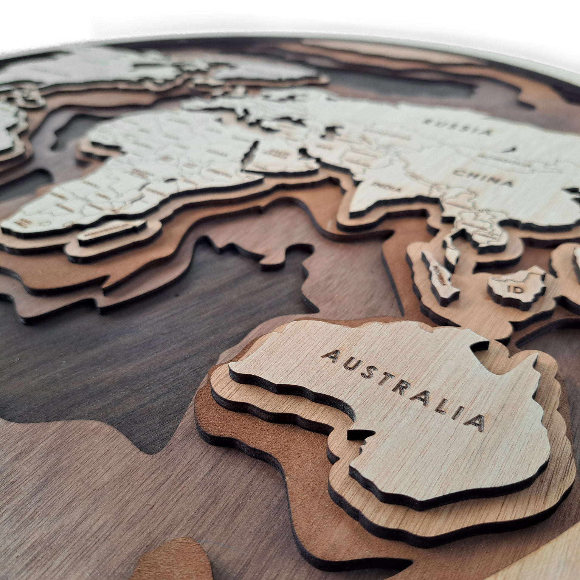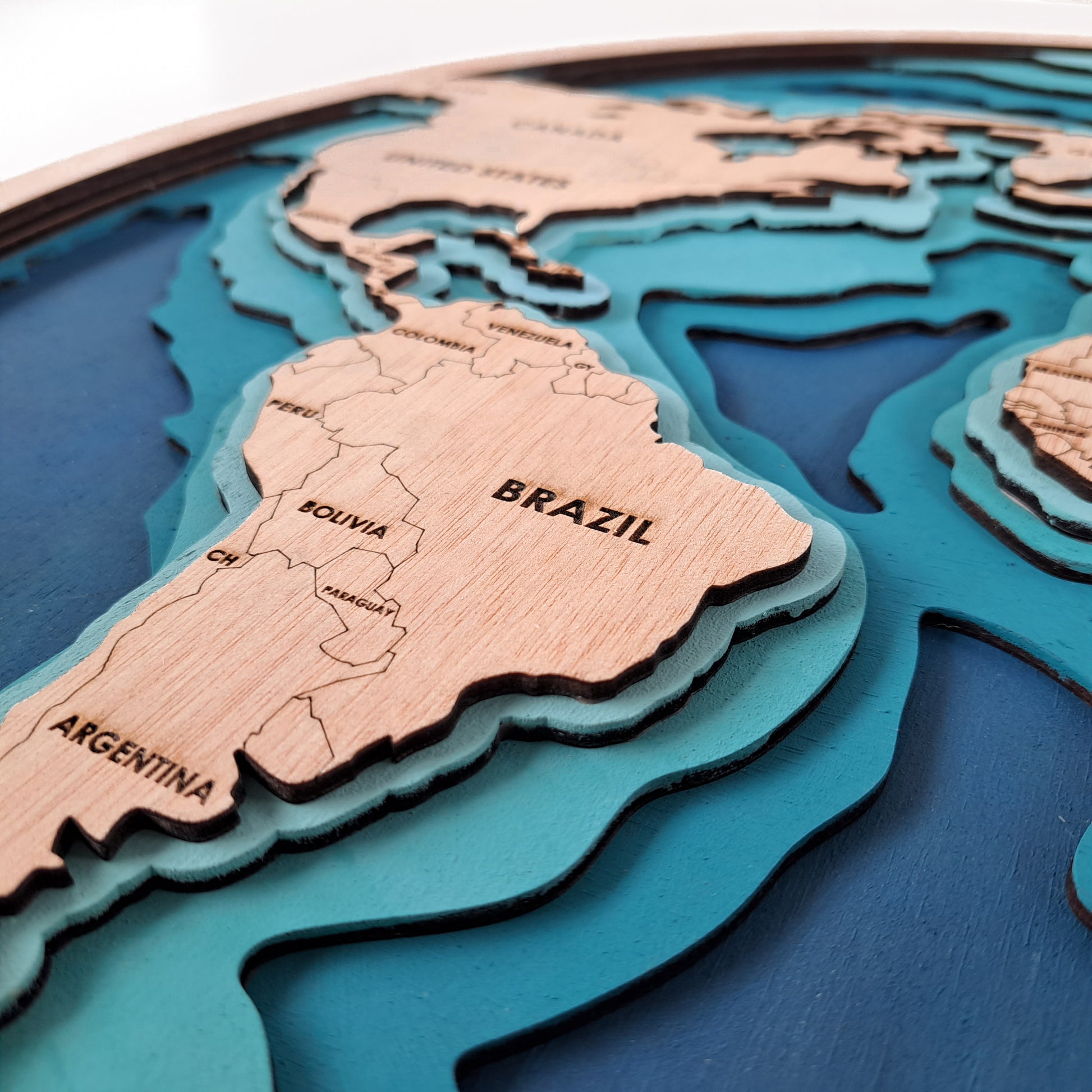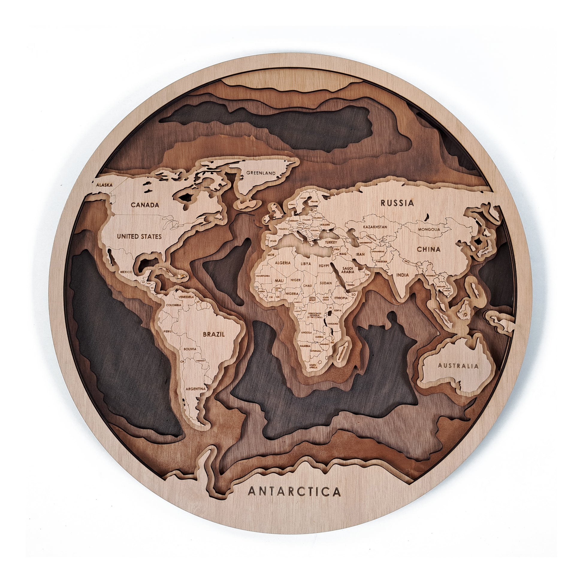 Esta pieza única ofrece una vista detallada de los continentes y océanos en capas. Ideal para quienes aman explorar el mundo, combina diseño elegante y funcionalidad, perfecto como decoración o herramienta educativa.