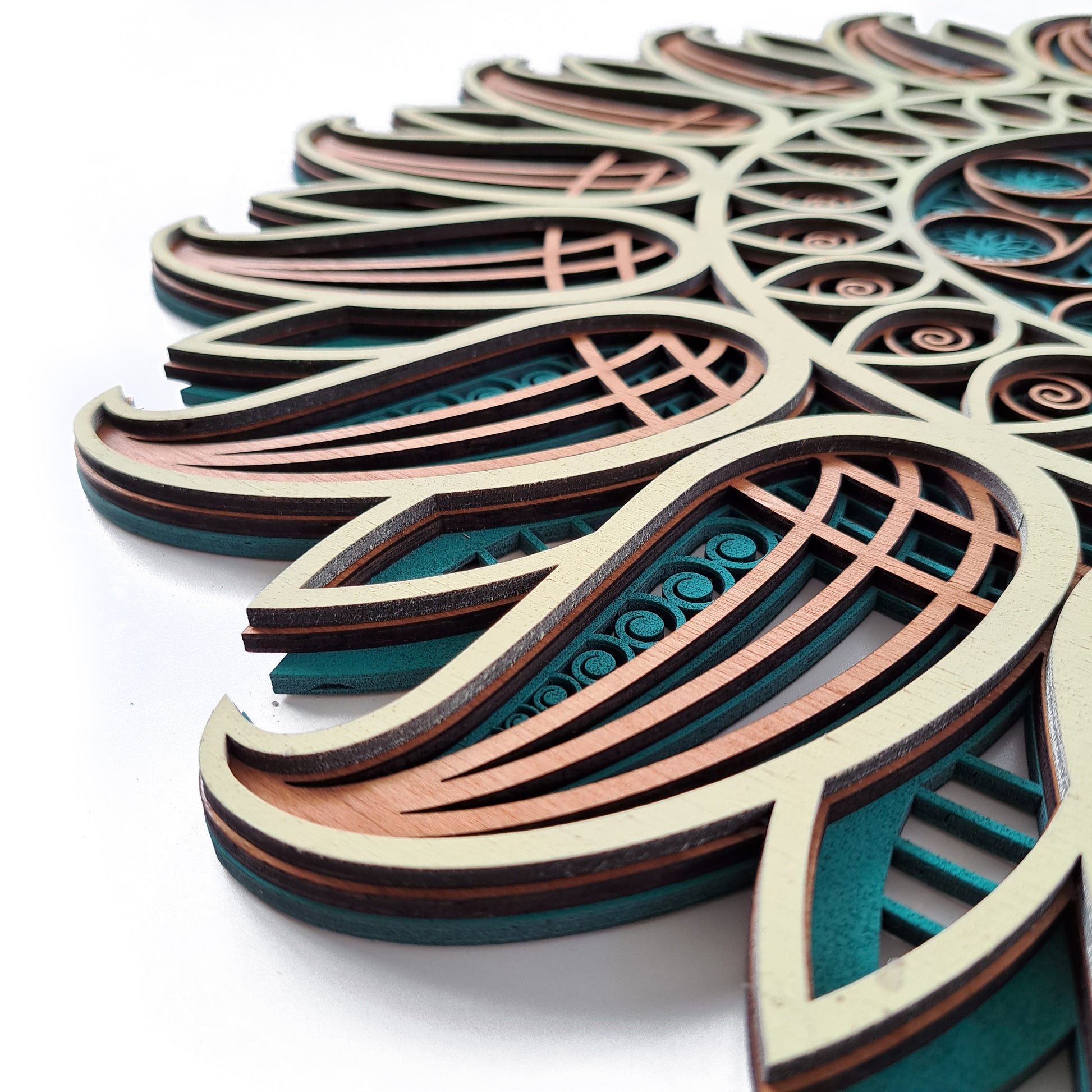 Este sol mandala multicapa esta fabricado en madera, es una obra de arte única que fusiona belleza y simbolismo. Con sus detalladas capas, representa energía, armonía y luz, convirtiéndolo en una pieza decorativa ideal para iluminar cualquier espacio y aportar paz y equilibrio a tu hogar.